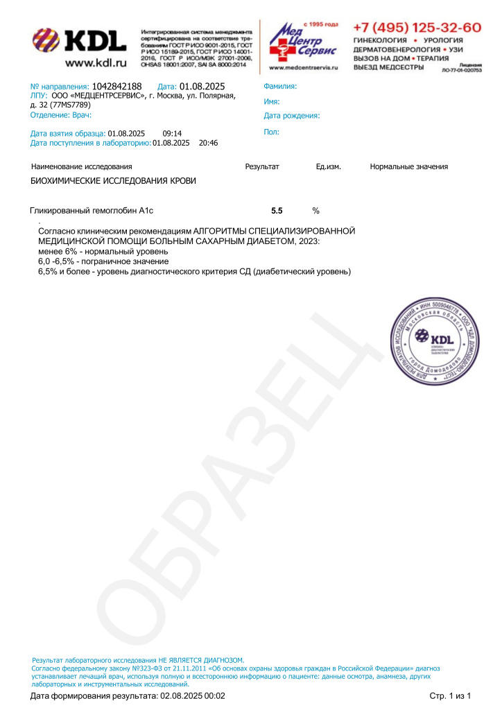 Полученные референсные значения служат лишь ориентиром для диагностики. Для точной интерпретации результата и постановки диагноза необходимо проконсультироваться с лечащим врачом (эндокринологом, диабетологом или терапевтом). Показатель HbA1c отражает средний уровень глюкозы в крови за последние 2-3 месяца, поэтому специалист проведёт комплексную оценку, сопоставив ваш результат с клинической картиной, факторами риска, данными анамнеза и результатами других обследований. Такой подход обеспечивает точную диагностику и позволяет избежать ошибочных заключений.