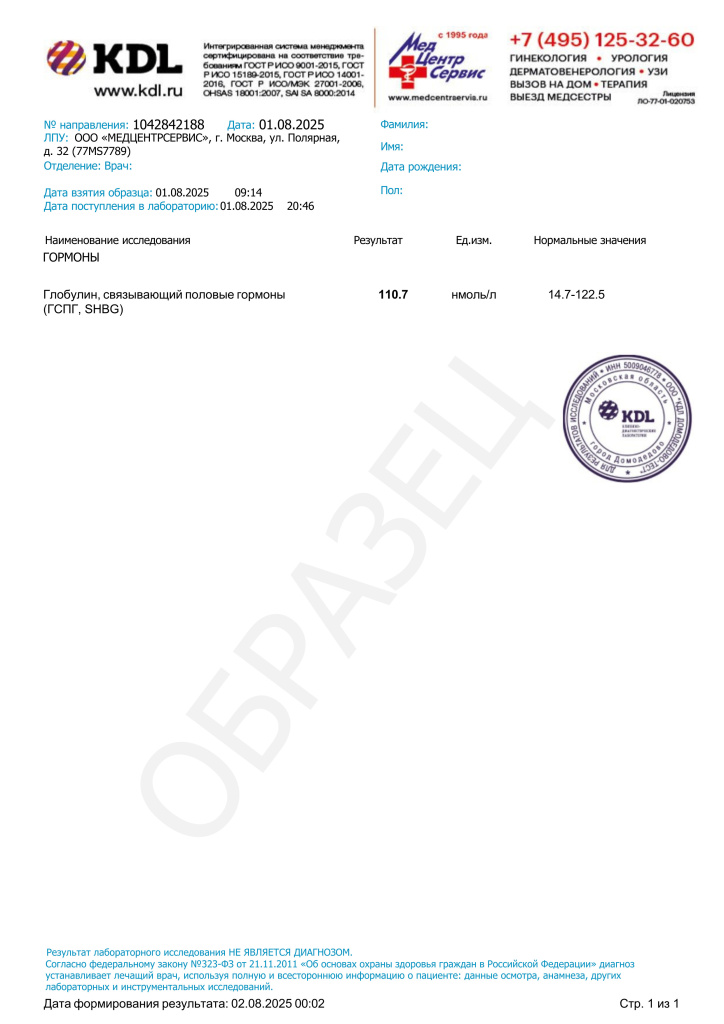 Полученный результат служит лишь ориентиром для диагностики. Для точной интерпретации результата и постановки диагноза необходимо проконсультироваться с врачом-эндокринологом, гинекологом или урологом. Специалист проведёт комплексную оценку, сопоставив ваш уровень глобулина с клинической картиной, данными анамнеза и результатами других обследований. Такой подход обеспечивает точную диагностику и позволяет избежать ошибочных заключений.