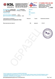 Анализ плазмы крови на молочную кислоту — это исследование для оценки степени кислородного голодания (гипоксии) тканей организма. Этот тест показывает, насколько эффективно клетки получают энергию и справляются ли печень и почки с утилизацией продуктов метаболизма. Его назначают преимущественно в условиях стационара или неотложной помощи при подозрении на тяжелые состояния, такие как шок, сепсис, острая сердечная или дыхательная недостаточность, для диагностики причин нарушения кислотно-основного баланса.