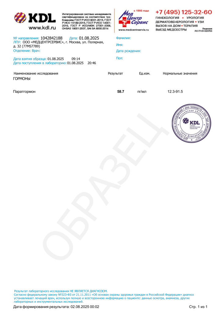 ВНИМАНИЕ! Информация в данном разделе предназначена исключительно для медицинских работников. Уровень паратгормона (ПТГ) не имеет самостоятельной диагностической ценности и не должен оцениваться изолированно. Для адекватной оценки кальций-фосфорного обмена его интерпретация требует обязательного сопоставления с уровнями общего и ионизированного кальция, фосфора, 25(OH)D и показателями функции почек (креатинин, СКФ).