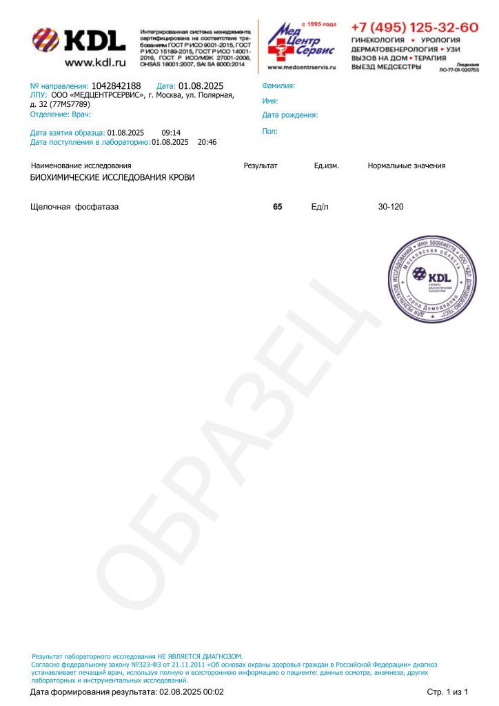 Анализ сыворотки крови на щелочную фосфатазу (ЩФ) — это исследование активности фермента, которое позволяет оценить состояние печени, желчевыводящих путей и костной ткани.