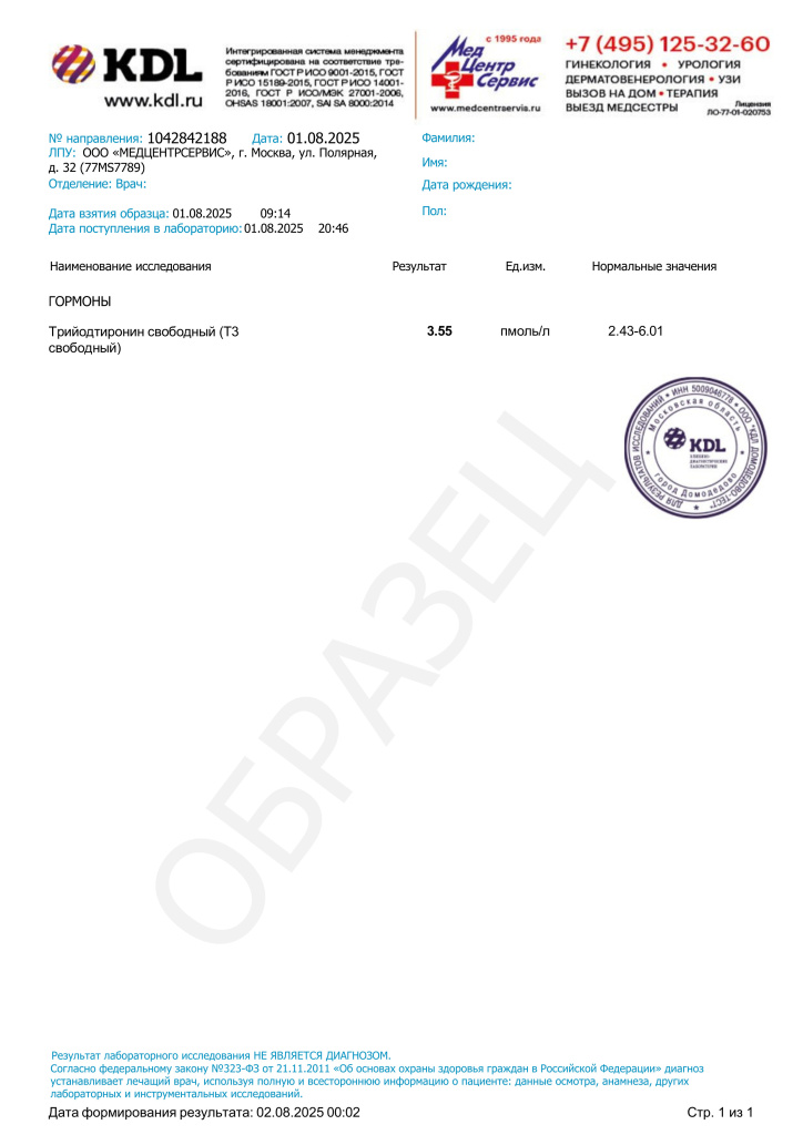 Если уровень свободного трийодтиронина отклоняется от референсных значений, для выяснения причин врач назначит дообследование: