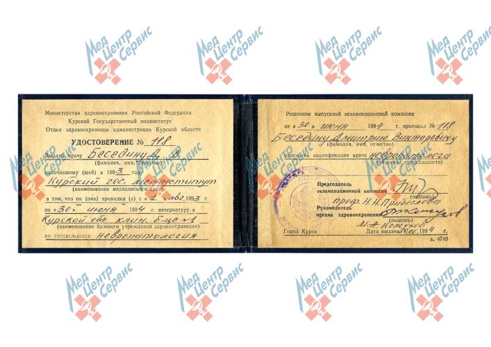 | 1994 г. | Интернатура по специальности «Невропатология» в Курской областной КБ №1 |