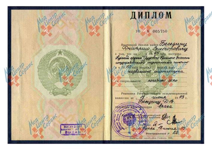 | 1993 г. | Диплом по специальности «Лечебное дело». Курский ордена Трудового Красного Знамени государственный медицинский институт |