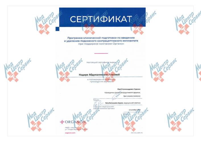 | 2023 г. | Обучение по программе клинической подготовки по введению и удалению подкожного контрацептивного имплантата при поддержке компании Органон |