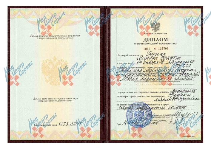 | 2008 г. | Профессиональная переподготовка по направлению «Скорая медицинская помощь». ГОУ ДПО РМАПО Росздрава |