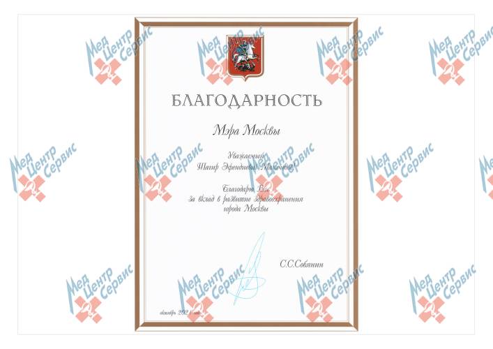| 2021 г. | Благодарность Мэра Москвы за вклад в развитие здравоохранения города Москвы |