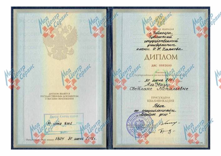 | 2001 г. | Диплом по специальности «Лечебное дело». Чувашский государственный университет им. И.Н. Ульянова |