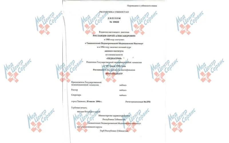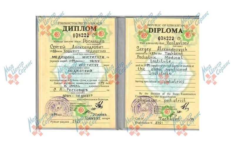 | 1994 г. | Ташкентский Педиатрический Медицинский Институт |