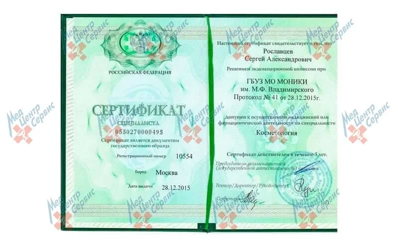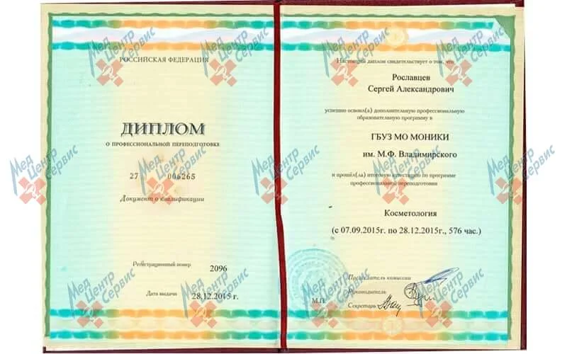 | 2015 г. | Профессиональная переподготовка по специальности "Косметология", МОНИКИ |