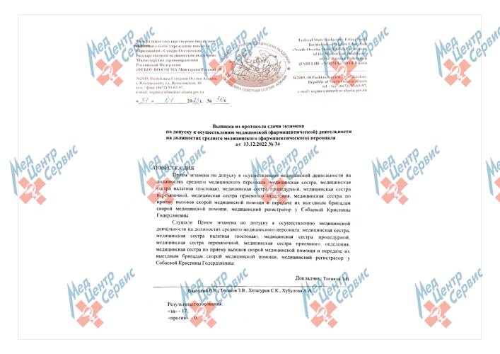 | 2022 г. | Первичная аккредитация по специальности «Сестринское дело». ФГБОУ ВО «Северо-Осетинская государственная медицинская академия» МЗ РФ |