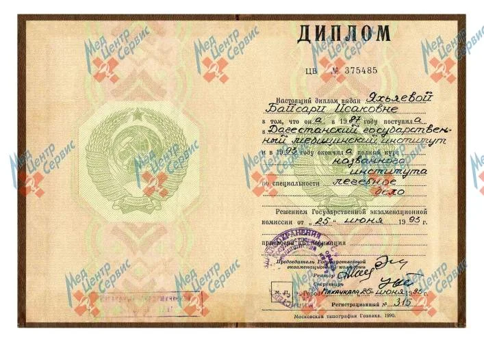 1993 г. | Диплом по специальности «Лечебное дело». Дагестанский государственный медицинский институт |