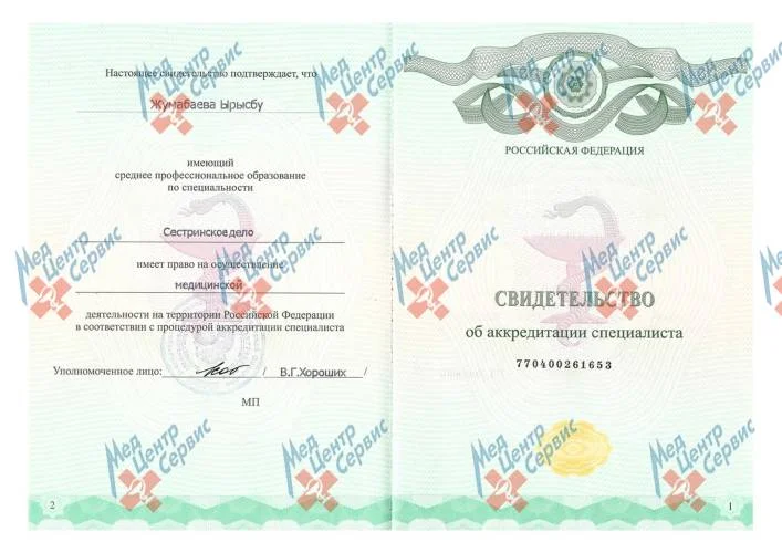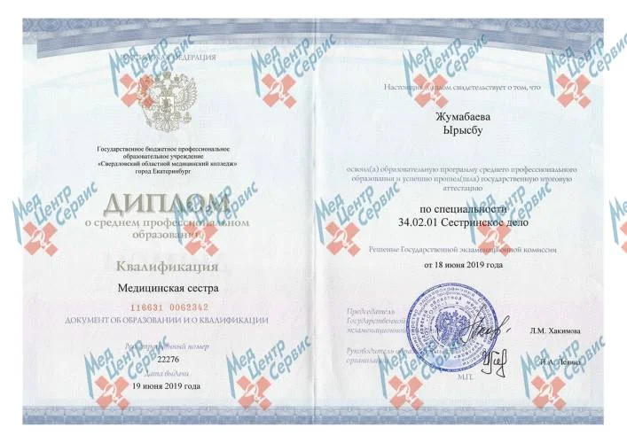 2019 г. | Диплом о среднем профессиональном образовании по специальности «Сестринское дело». ГБПОУ «Свердловский областной медицинский колледж» |