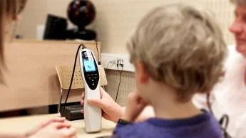 Диагностика безболезненна. Ее проводят в положении сидя. Врач устанавливает на ухо специальный зонд, который подает звуки и в то же время улавливает отраженные звуковые колебания от барабанной перепонки.